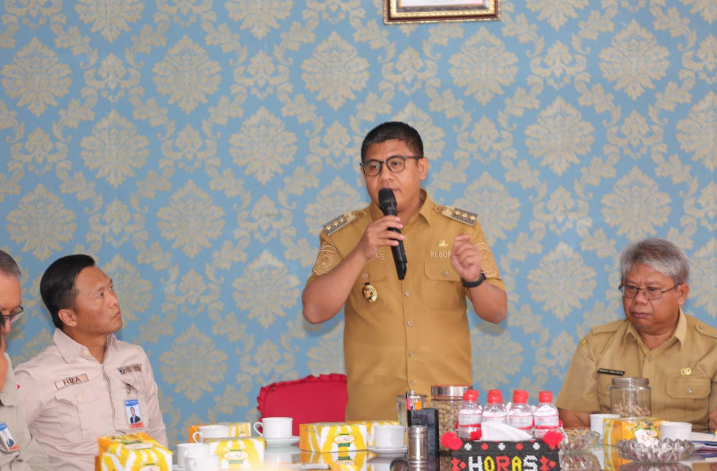 Penjabat Bupati Tapanuli Utara Dr. Dimposma Sihombing, S.Sos, M.A.P didampingi Asisten Perekonomian dan Pembangunan Setdakab Tapanuli Utara Marihot Simanjuntak, Kepala Bagian Perekonomian dan SDA Setdakab Tapanuli Utara Tutur Simanjuntak dan Pimpinan Perangkat Daerah yang tergabung dalam Tim Pengendalian Inflasi Daerah (TPID) Kabupaten Tapanuli Utara menyambut kunjungan Pemerintah Provinsi Riau, Pemerintah Kota Pekanbaru, Pemerintah Kabupaten Siak, Kepala Perwakilan Bank Indonesia Sibolga dan Deputi Kepala Perwakilan Bank Indonesia Provinsi Riau di Rumah Dinas Bupati Tapanuli Utara. Selasa (20/08/2024).