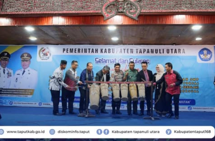 Wakil Bupati Tapanuli Utara, Dr. Deni Parlindungan Lumbantoruan, M.Eng, bersama jajaran Forum Koordinasi Pimpinan Daerah (Forkopimda) didampingi Penjabat (Pj) Sekda David Sipahutar, Kepala Dinas Pendidikan dan kebudayaan Bontor Hutasoit ‘Launching’ 4 (empat) program inovatif di bidang pendidikan bertempat di Sopo Partungkoan Tarutung, (Selasa, 20 Mei 2025).