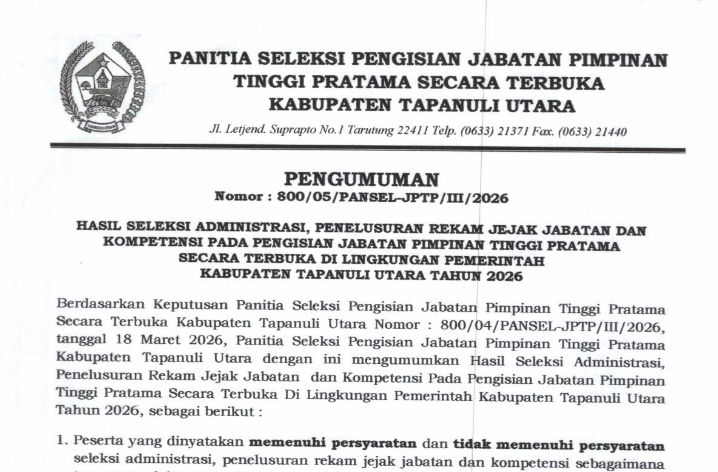 Pengumuman Hasil Seleksi Administrasi JPT Pratama 2026